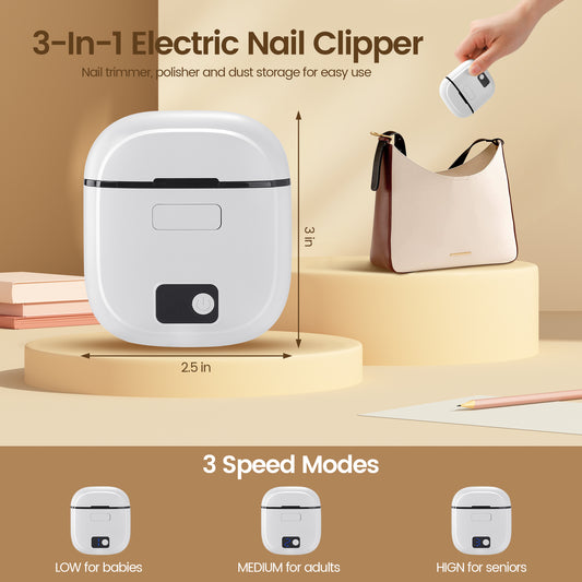 INVOTEK Electric Nail Clipper, 3-in-1 Fingernail Trimmer, Polisher & Clip Storage with LED Light, Automatic Safety Nail Cutter, USB Rechargeable & 3 Speed for Seniors, Adults, Babies