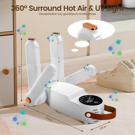 INVOTEK Electric Shoe & Boot Dryer with Heat Blower Double Arms Portable Home Shoe & Sneakers & Gloves Warmer with Digital Display Folding Design for Work Household Travel